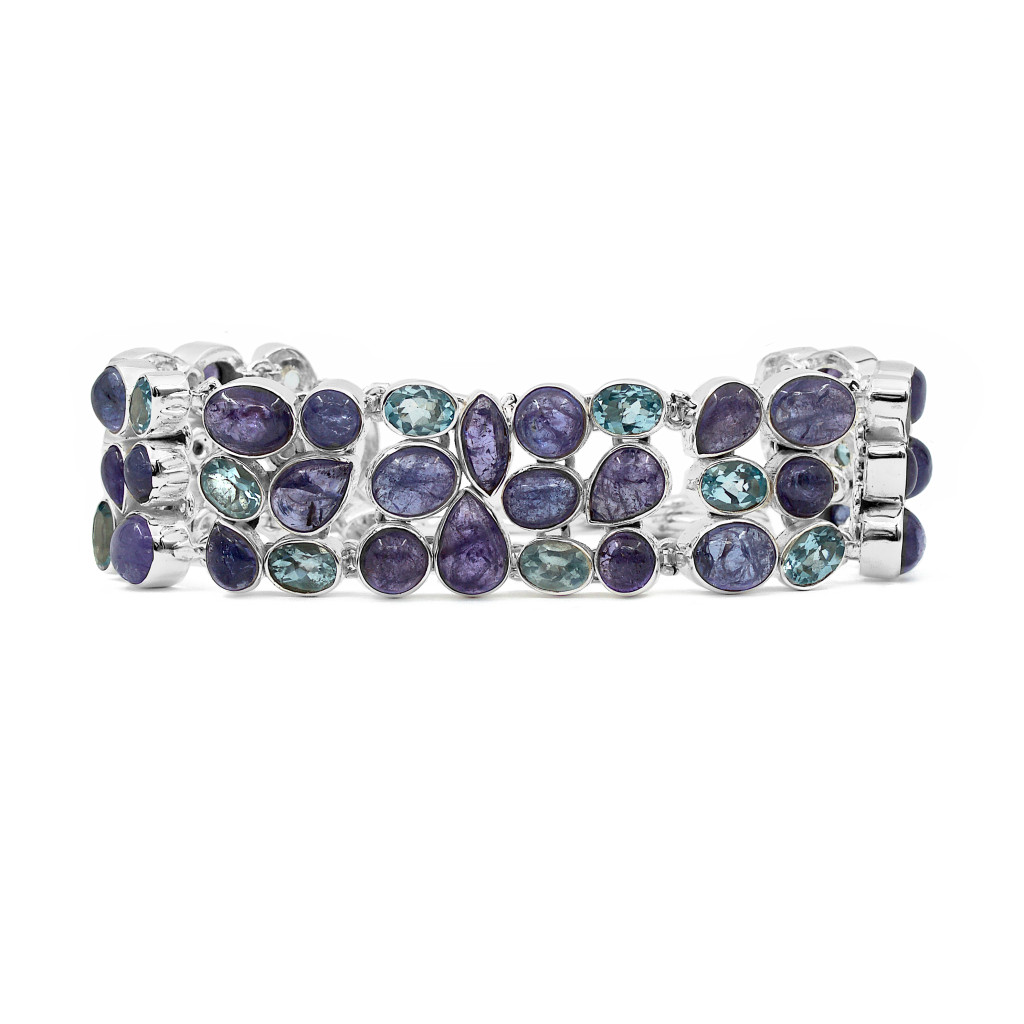 Egyedi ezüst tanzanit és kék topáz köves karlánc
