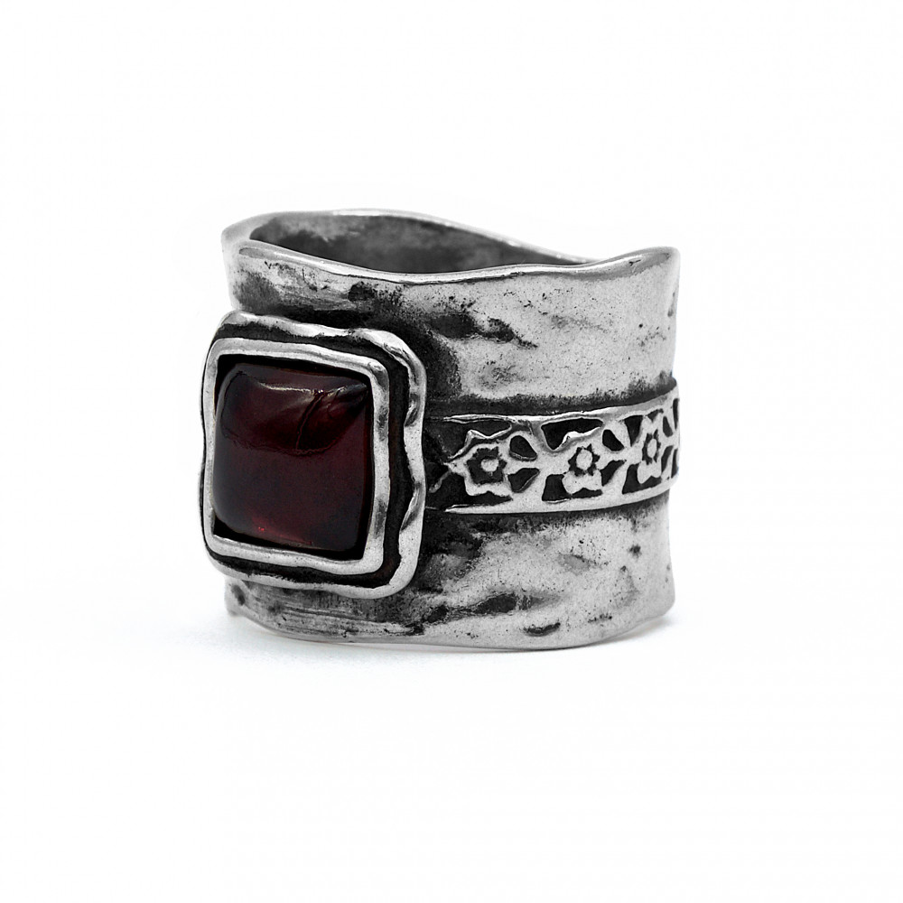Izraeli ezüst gránát köves csőgyűrű