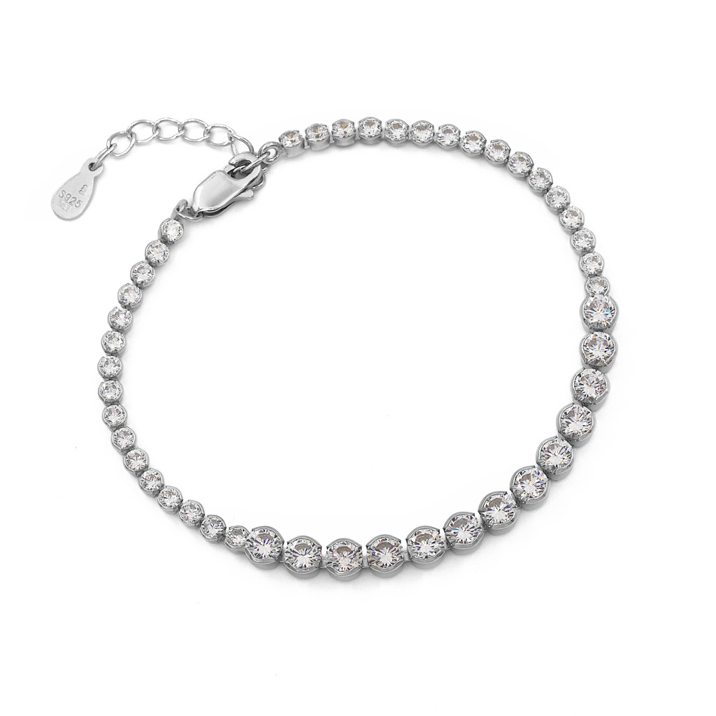 Ezüst cirkónia köves karlánc "button"