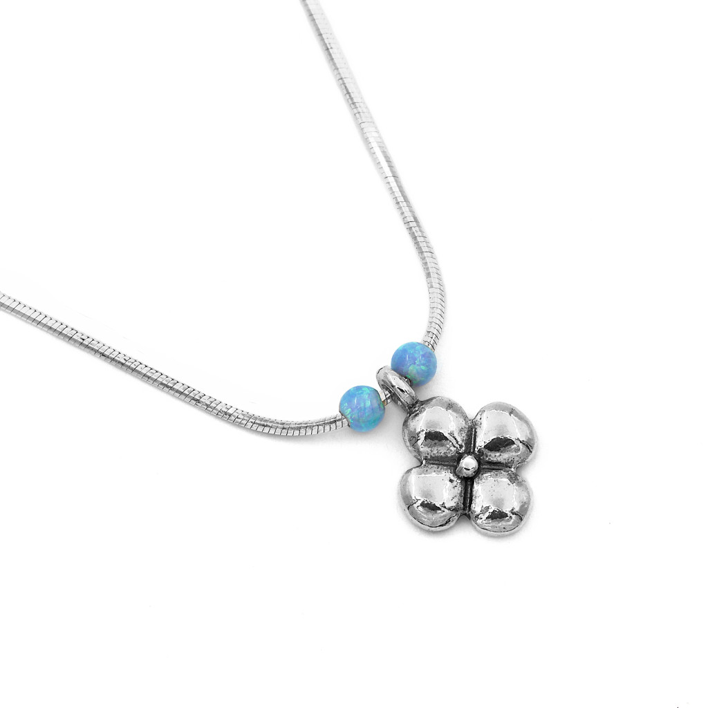 Az ezüst virág 10 mm átmérőjű. Az opál gömbök 3 mm átmérőjűek, a lánc 0,9 mm széles.