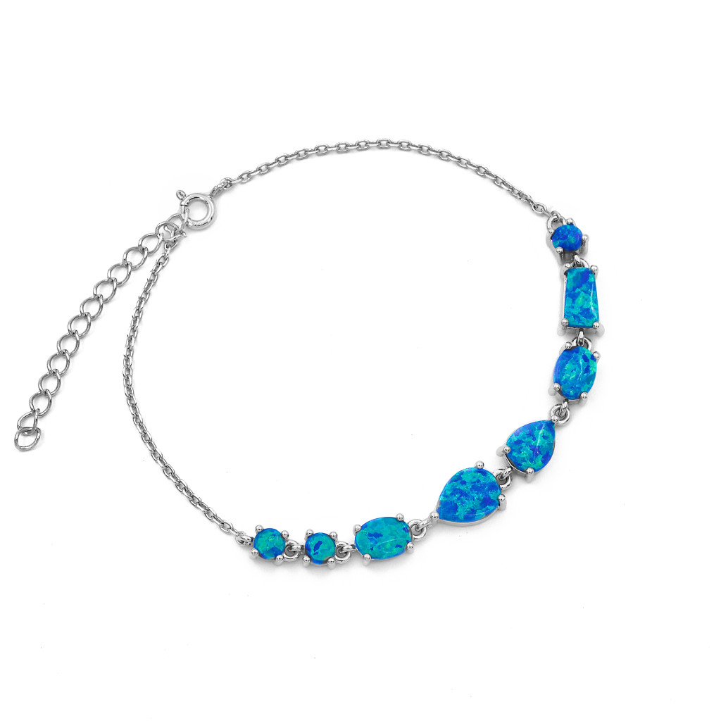 Ezüst kék opál köves karlánc