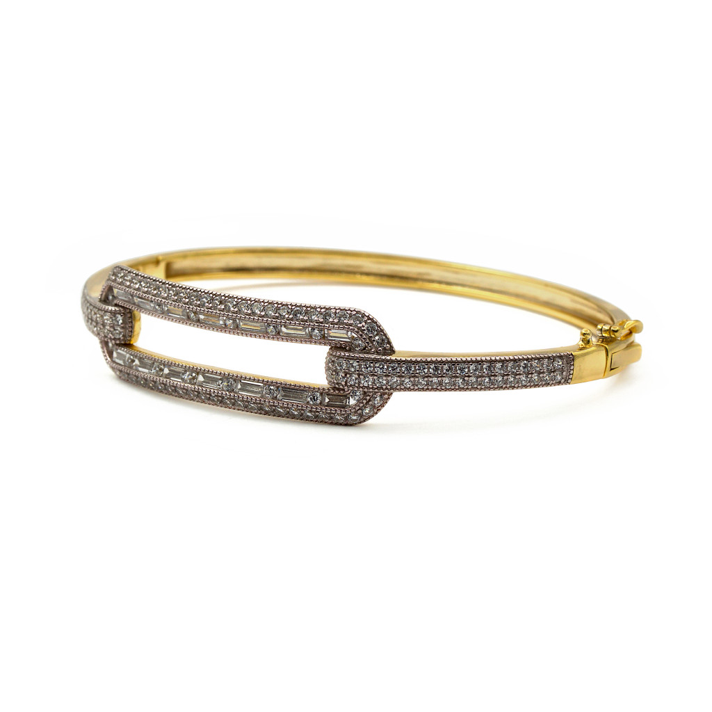 Ezüst aranyozott cirkónia köves merev karkötő