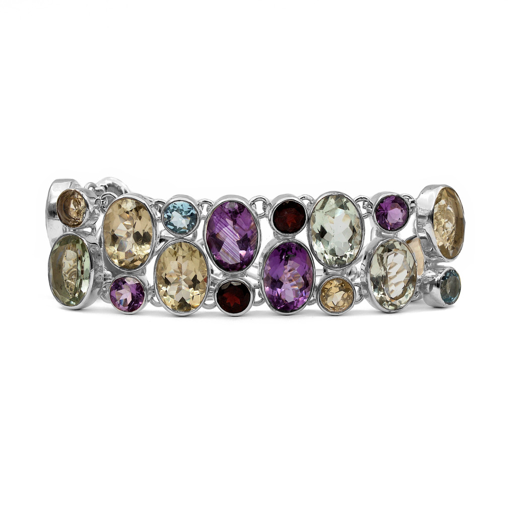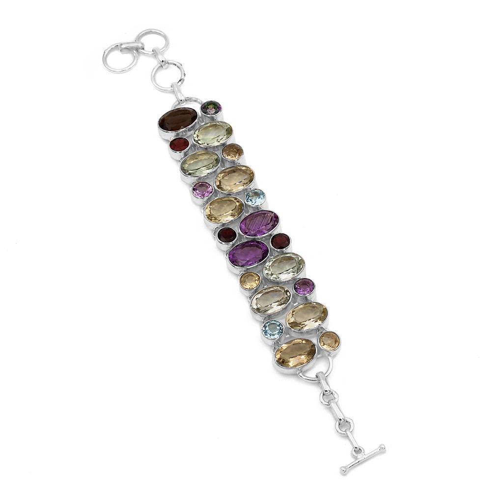 Kő Ametiszt, citrin, zöld ametiszt, füstkvarc, gránát és kék topáz.Anyag 925 ezüstFelület PolírozottMéret 17 vagy 18,5 vagy 20,5 cmSzín Lila, sárga, halványzöld, barna, bordó és világoskékMárka Ékszer ABCRaktárkészlet 1 dbCikkszám EA668614Tömeg 45,1 g/db