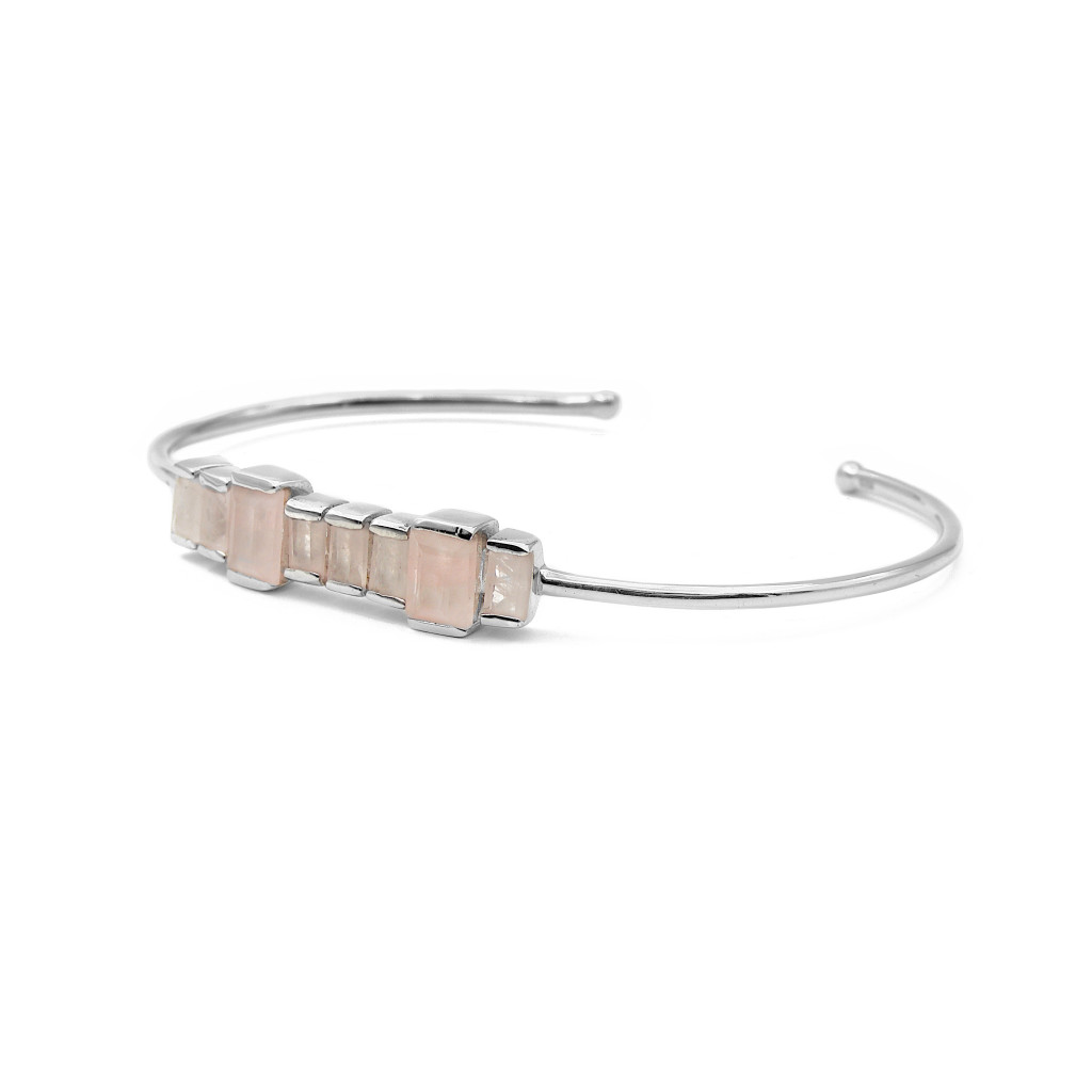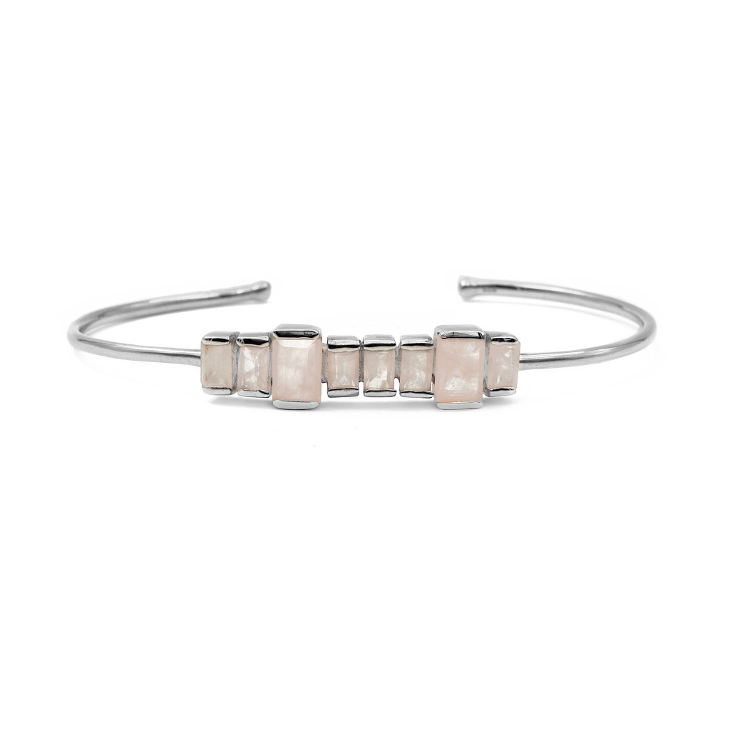 Ezüst rózsakvarc karkötő (merev)